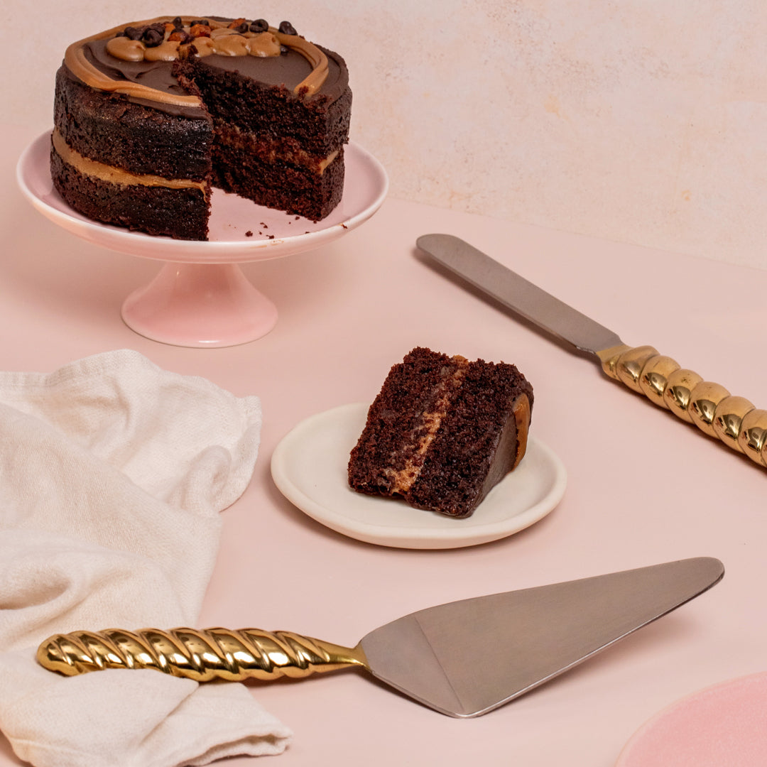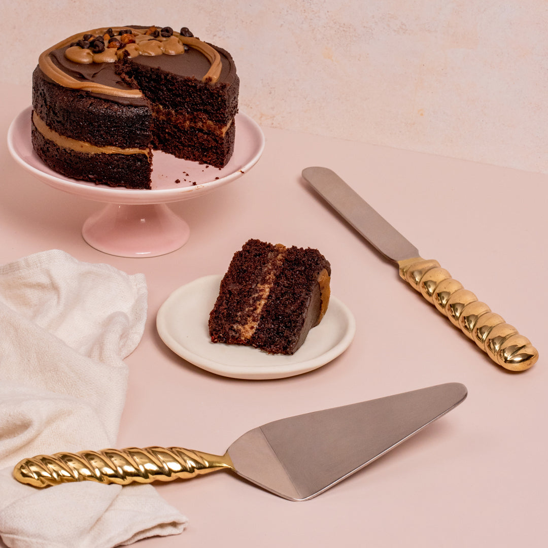 Crafted with a croissant style brass handle, serve your pies and cakes with class, whether it be at home, weddings or dinner parties.